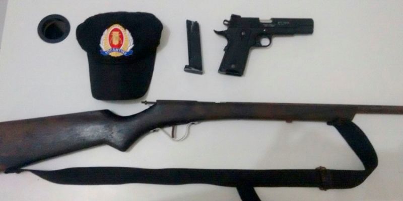 De acordo com o levantamento de informações, o suspeito é conhecido na região por comercializar armas de fogo. Ele declarou possuir outras armas, indicando o local onde as guardava. Após verificação, a PM localizou uma espingarda artesanal tipo bate-bucha e um simulacro de pistola PT 1911, marca Taurus, com carregador. O envolvido e as armas apreendidas foram apresentados na Delegacia de Polícia Civil de Miracema para as devidas providências legais pertinentes.