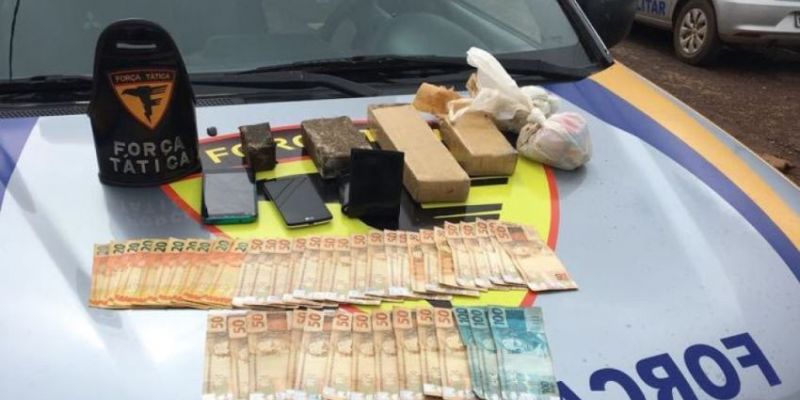 Os policiais militares da Força Tática do 7º Batalhão realizavam patrulhamento, por volta das 7 horas da manhã, no setor Aeroporto, quando se deparam com dois indivíduos em atitude suspeita. Na abordagem policial foram encontradas a quantia de R$ 2 mil reais em espécie e uma sacola contendo com 1,8 kg de tabletes de maconha e mais 40 gramas de crack.