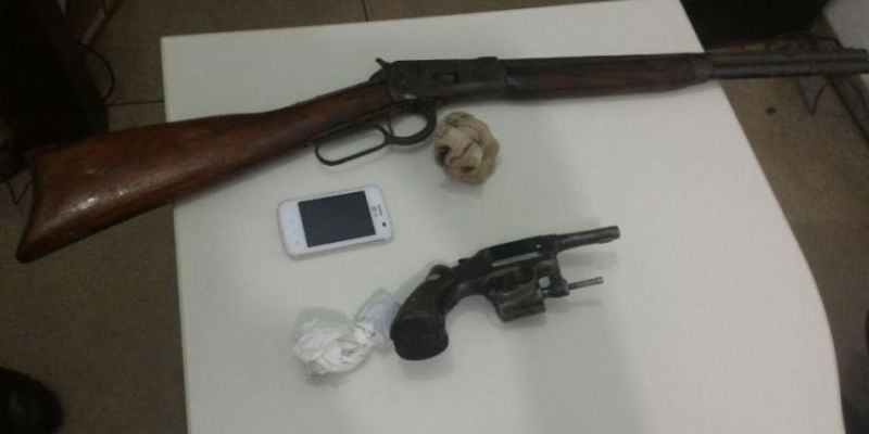 Na noite da última sexta-feira, 31/03, na Rodovia TO-222, município de Araguaína, o Batalhão de Polícia Militar Rodoviário e de Divisas – BPMRED prendeu um indivíduo acusado de porte ilegal de arma de fogo e com mandado de prisão em aberto. No veículo em que o suspeito trafegava os policiais apreenderam uma carabina calibre 44, um revólver calibre 38, e algumas munições.
