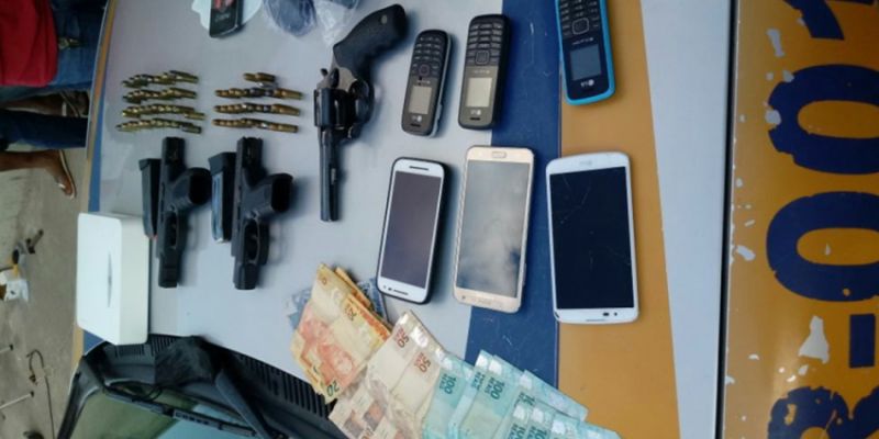 Material apreendido pela PM com suspeitos de assalto à Agência dos Correiros em Itacajá