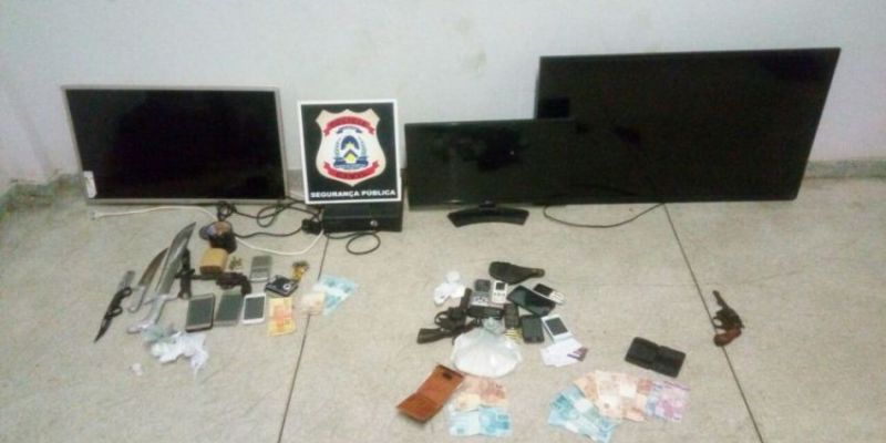Durante a ação foram apreendidos três revólveres calibre 38, munições do mesmo calibre, aproximadamente 300 gramas de maconha, além de dinheiro proveniente da venda de drogas, aparelhos televisores, sem nota fiscal, bem como facas e aparelhos celulares.