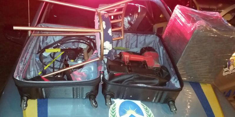 Diante dos fatos e através modus operandi do infrator da lei, os Policiais Militares realizaram diligência em busca a um homem de 41 anos, usuário de drogas, que já foi preso outras vezes pela Polícia Militar pele cometimento da mesma prática justamente do mesmo jeito e, assim, obtiveram êxito. Os Policiais Militares deslocaram rumo à residência do suspeito e se depararam com ele na Rua Frei Damião, Vila Goiás. Ele estava transportando todos os produtos furtados os puxando sobre a mala furtada.