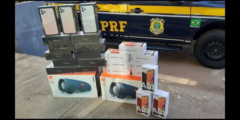 Na ocasião, a equipe da PRF abordou um ônibus que vinha de Goiânia/GO com destino a Imperatriz/MA, e durante vistoria no bagageiro inferior, foram encontradas duas caixas de papelão contendo diversos produtos, entre eles, celulares Iphone 11 Pro Max, Samsung A01 e caixas de som JBL Xtreme 2. Os produtos não portavam os respectivos documentos fiscais.