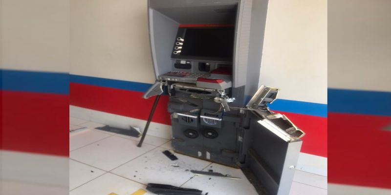 Legenda foto: Apesar do estrago no caixa eletrônico, criminosos não conseguiram levar o dinheiro