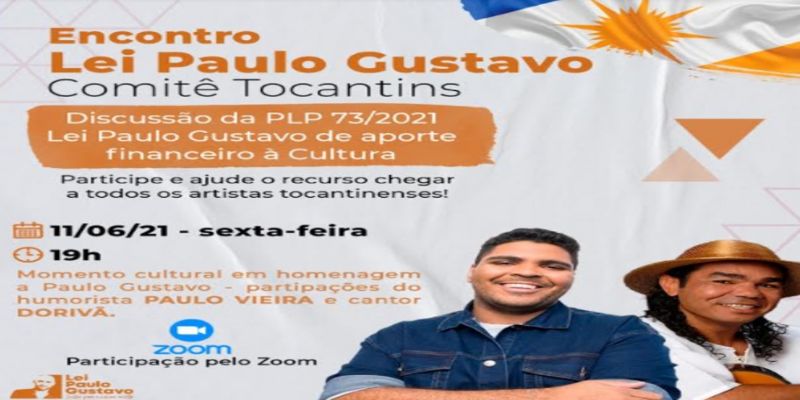 Em tramitação no Senado, a Lei Paulo Gustavo ( PLP 73/2021) pretende destinar R$ 4,3 bi ao setor cultural, como medida emergencial. No Tocantins, uma frente em defesa da Lei já está se formando com uma rede de apoio parlamentar, denominada Comitê Paulo Gustavo Tocantins. O lançamento oficial do Comitê será transmitido nesta sexta-feira, 11, a partir das 19 horas, nas redes sociais @comitepaulogustavo (Instagram) e Comitê Paulo Gustavo (Youtube e Facebook). O objetivo é a mobilização pela aprovação do PLP Paulo Gustavo.