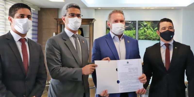 O governador do Estado do Tocantins, Mauro Carlesse, e o superintendente do Patrimônio da União em Tocantins, Lúcio Silva Alfenas, assinaram na manhã desta segunda-feira, 27, o Termo de Aditamento que garante mais dois anos de prazo, para que seja construída a nova sede do Ministério Público Estadual do Tocantins (MPTO), em Gurupi. A sede será construída no Parque Filó Moreira e terá uma área construída de 1.500 m².