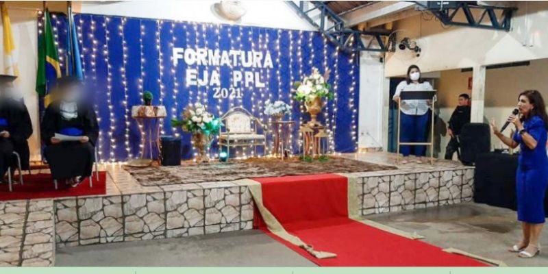 O Governo do Tocantins por meio das Secretariaa de Estado da Cidadania e Justiça (Seciju) e de Estado da Educação, Juventude e Esportes (Seduc) realizou na terça-feira, 21, a formatura para conclusão do ensino médio de quatro custodiados da Unidade Penal de Colmeia, na modalidade Educação de Jovens e Adultos (EJA). A cerimônia, promovida pela equipe gestora da Escola Mãe - Colégio Estadual Serra das Cordilheiras, teve direito a tapete vermelho, beca de formatura e canudo, a fim de proporcionar um momento único e transformador para os privados de liberdade.