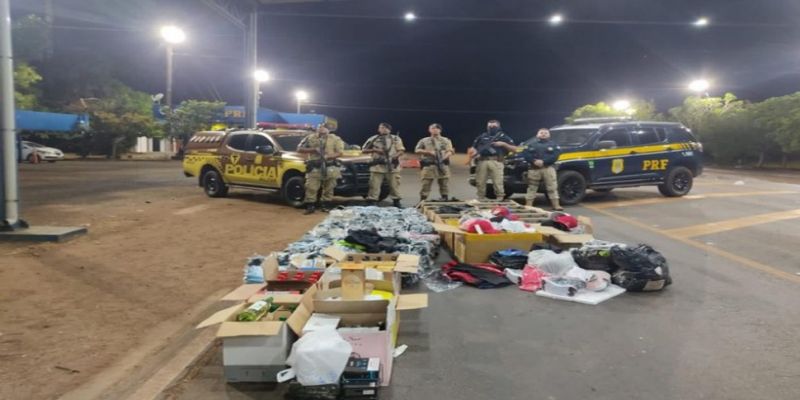 Na noite desta terça-feira (31), a Polícia Rodoviária Federal em ação conjunta com a Polícia Militar do Tocantins (PM/TO), apreendeu diversos itens que estavam sendo transportados de forma irregular em ônibus de transporte rodoviário de passageiros. Dentre os produtos foram localizados 840 unidades de itens de vestuário, 1.000 unidades de coldres de polímero, 100 L de bebidas, 8 unidades de aparelhos celulares, 700 unidades de eletrônicos diversos e 2.000 unidades de acessórios para celular.