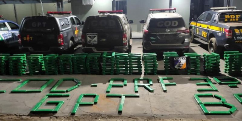 Ao ser abordado, o condutor do veículo, que já possui passagens criminais, ficou nervoso, levando a equipe a fazer uma busca veicular. Momento em que os policiais localizaram a substância análoga à maconha (Cannabis Sativa), que estava escondida embaixo da carga de ração, contendo vários tabletes, totalizando aproximadamente 800 kg da droga.