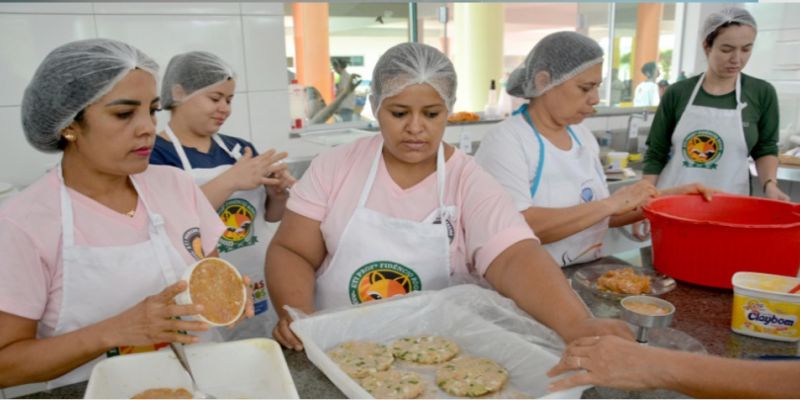 Com o próprio sistema de cultivo de peixes, e visando o aproveitamento completo da produção, as escolas de Tempo Integral (ETI) Agroecológica Professor Fidêncio Bogo, situada em Taquaruçu Grande; Marcos Freire, no Assentamento São João; e Almirante Tamandaré, na quadra 1.306 Sul, estão recebendo do Instituto de Desenvolvimento Rural do Tocantins (Ruraltins) capacitação sobre o beneficiamento de pescado. O curso está sendo ministrado pela bióloga do Ruraltins, Cassia Bento Sobreira, na cozinha da Escola Fidêncio Bogo, às merendeiras das três unidades. Na sexta-feira, 14, ocorreu o segundo módulo da capacitação.