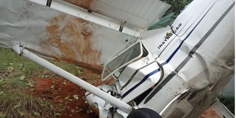 Conforme imagens feitas no local, é possível ver que a aeronave caiu ao solo de ‘bico’, e ficou com a parte da frente destruída. Na lataria tem a inscrição de que é o avião é usado para instrução de pilotos.