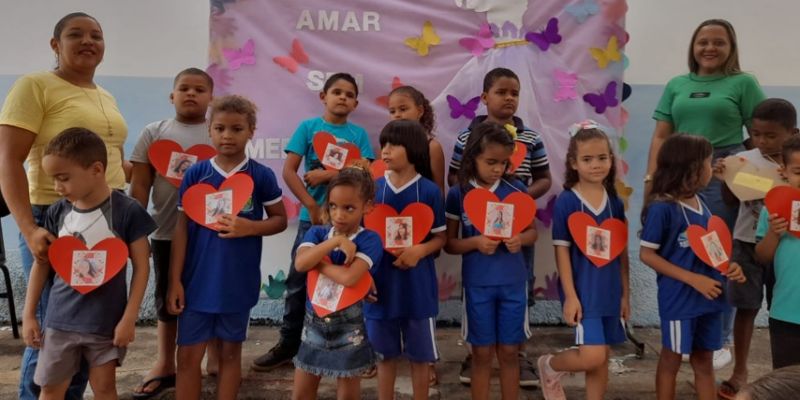 Alunos da Escola Municipal Professor Constantino Pedro de Castro, de Tocantínia, participam de homenagem ao Dia das Mães