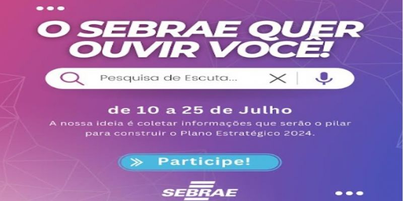 Para ouvir as necessidades e expectativas do seu público-alvo, os pequenos negócios, fornecedores e demais entes da sociedade civil, o Sebrae Tocantins vai aplicar, neste mês, a pesquisa "O Sebrae quer ouvir você”. O foco do estudo é coletar informações que serão o pilar para construir o plano estratégico da instituição em 2024.