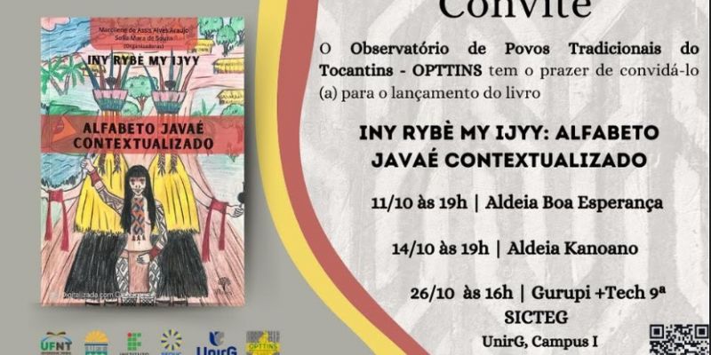 Um grupo de professores indígenas, acadêmicos e professores pesquisadores da Universidade de Gurupi – UnirG, integrantes do Observatório de Povos Tradicionais do Tocantins – OPTTINS, estará lançando nos próximos dias, 11, 14 e 26 de outubro, a publicação do livro, “Iny rybè my Ijyy: alfabeto Javaé contextualizado”. O evento ocorrerá nas aldeias Boa Esperança e Kanoano, além da Gurupi+Tech/9ª Sicteg, campus I da Instituição