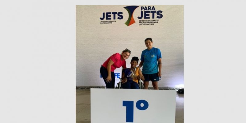 Na quarta-feira, 11, em Palmas, o medalhista de ouro nas Paraolimpíadas Escolares 2023, Marcos Felipe Rodrigues, aluno da Escola Municipal Benvindo Souza Luz, localizada no Assentamento Água Fria II, no município de Tocantínia, ganhou o primeiro lugar na   edição  estadual dos  Jogos Estudantis Paradesportivos do Tocantins  (Parajets), promovidos pela Secretaria de Estado da Educação (Seduc). O feito foi comemorado com entusiasmo pelo Coordenador de Esportes  da Secretaria Municipal de Educação (Semed),  Domingos Miranda, um dos grandes incentivadores do atleta.